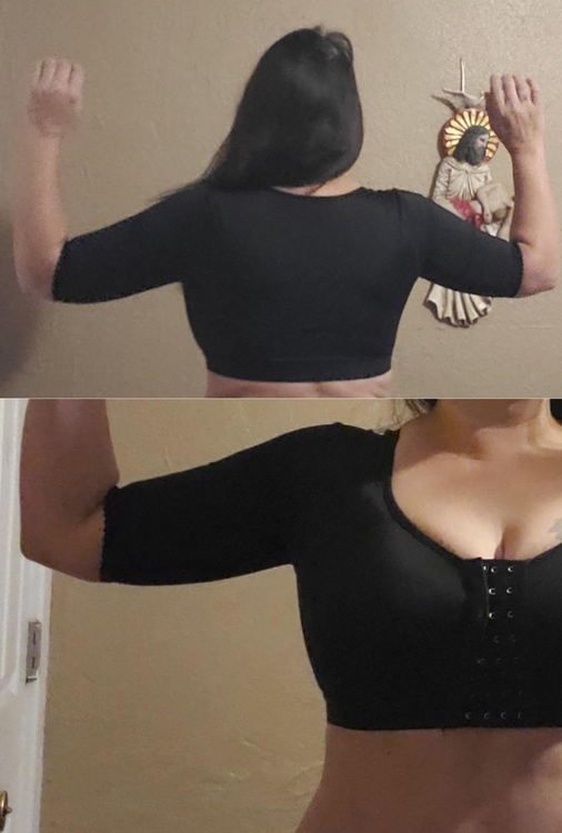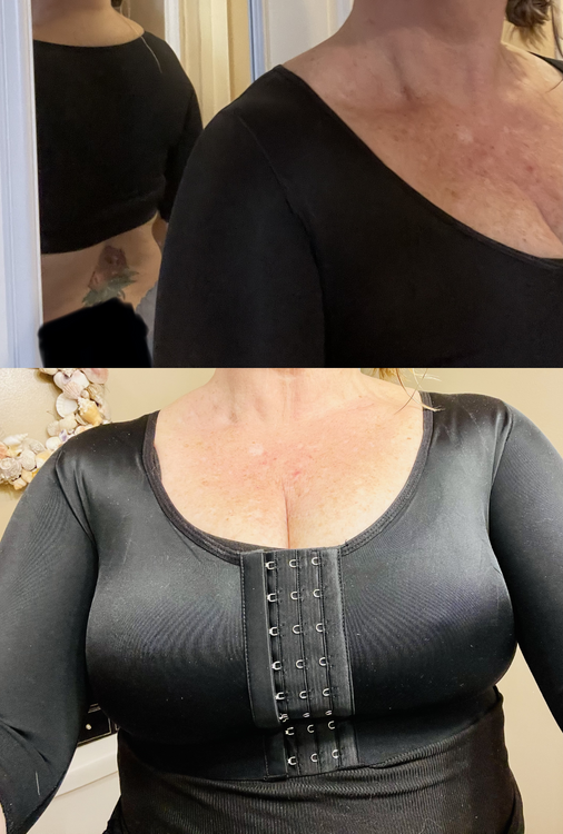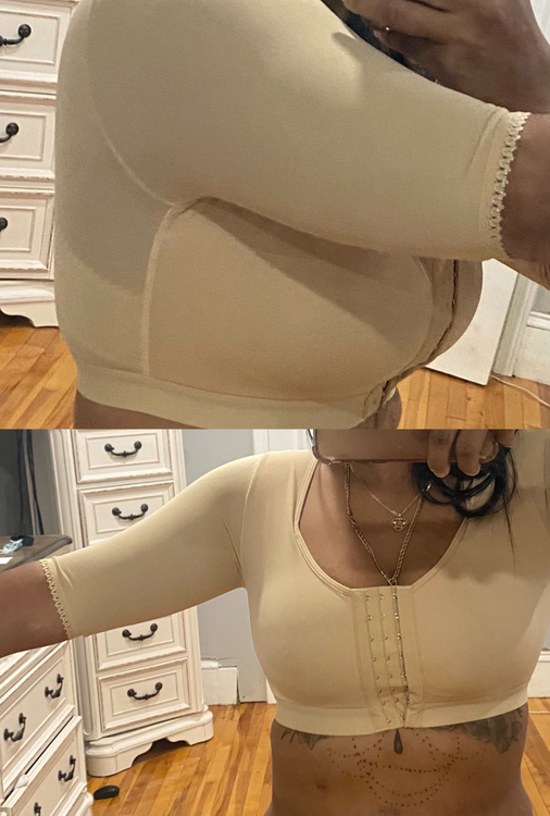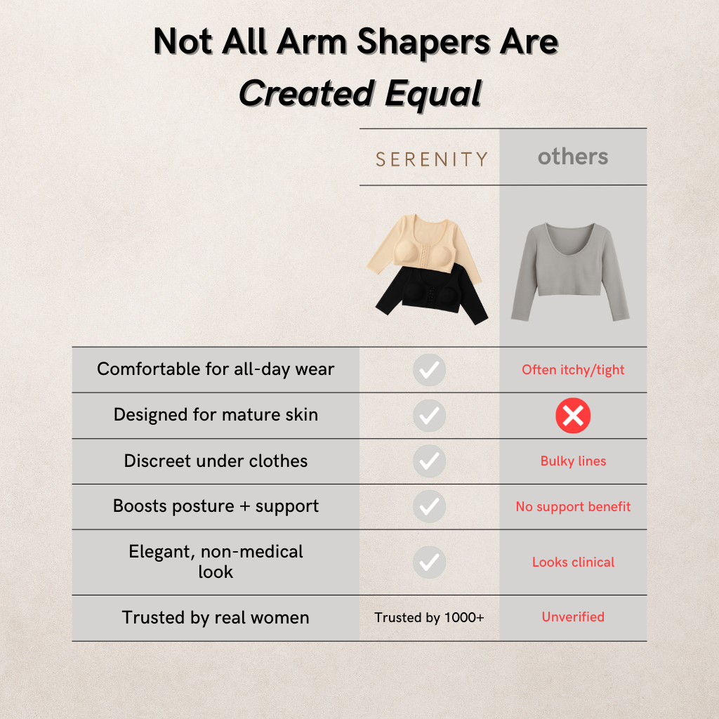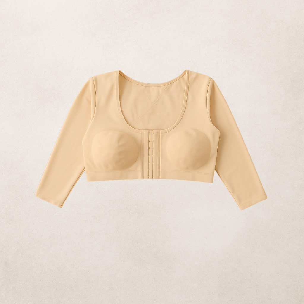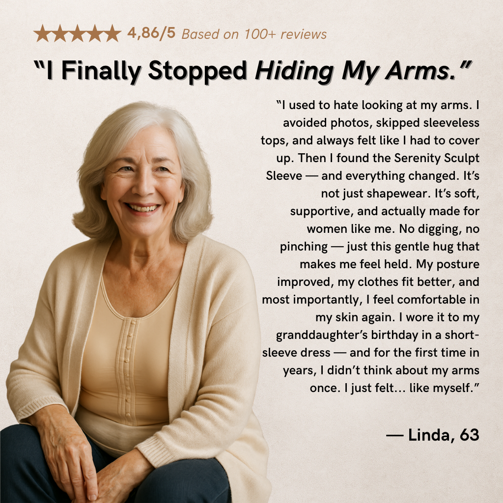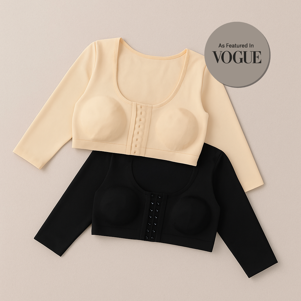 Our ¾ sleeve design gently smooths and sculpts your upper arms — no digging, no squeezing, just a soft, invisible hug. Whether you’re running errands or dressing up for a special moment, it moves with you, giving you a sleek silhouette and the comfort to feel like yourself again.